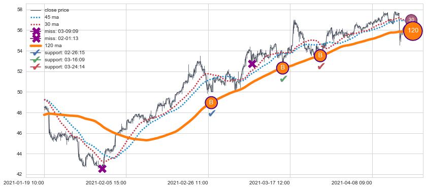 上涨趋势01-19 10:00-04-15 15:00,均线120确认关键支撑3处