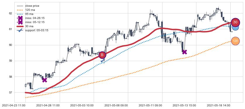 上涨趋势04-23 11:00-05-18 15:00,均线30确认关键支撑1处