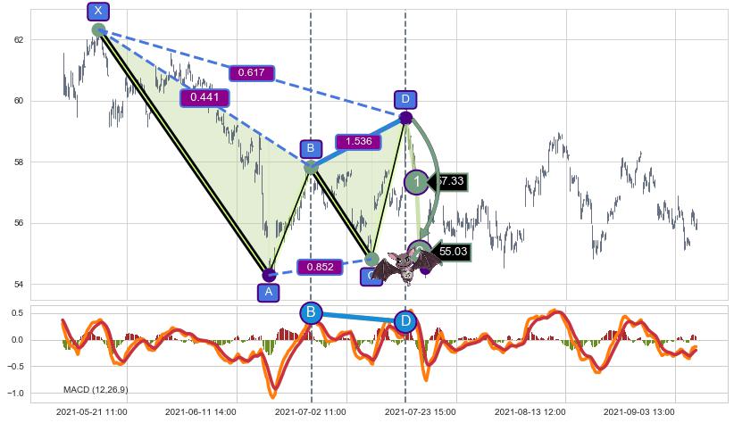 ➣ 已完成【蝙蝠】形态起点X: 05-17:13, 终点D: 07-15:10, 共281交易小时