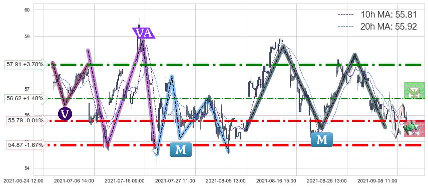 ♘ 阻力价格位57.91,可信任强度91.44%,距离最后交易2021-09-09 14:00形成的收盘价格55.80相差 +3.78%