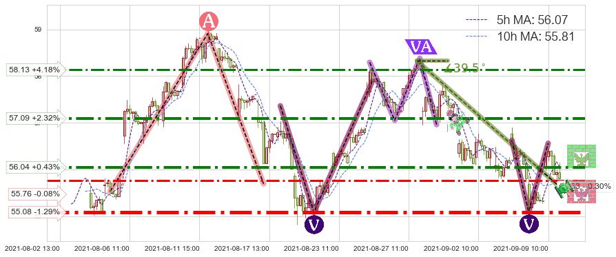 ♘ 阻力价格位56.04,可信任强度77.00%,距离最后交易2021-09-09 14:00形成的收盘价格55.80相差 +0.43%