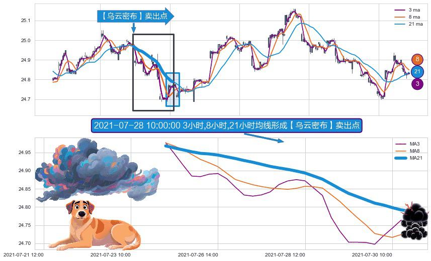 ⚀ 2021-07-23 14:00:00小时-2021-07-30 12:00:00小时显现 3小时-8小时-21小时均线 【乌云密布】卖出点 看空信号,后市看跌,卖出