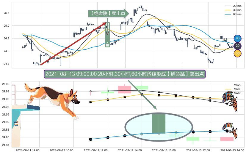 ⚀ 2021-08-13 09:00:00小时显现 20小时-30小时-60小时均线 【绝命跳】卖出点 看空信号,后市看跌,卖出