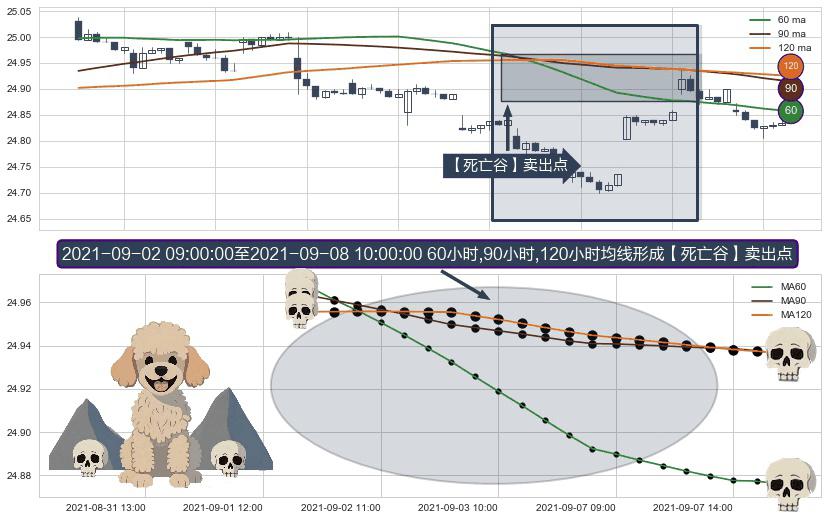 ⚀ 2021-09-02 10:00:00-小时至2021-09-08 10:00:00-小时显现 60小时-90小时-120小时均线 【死亡谷】卖出点 看空信号,后市看跌,卖出