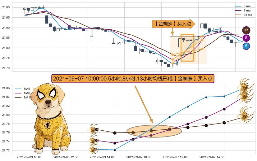 ⚀ 2021-09-07 10:00:00小时显现 5小时-8小时-13小时均线 【金蜘蛛】买入点 看多信号,后市看涨,买入