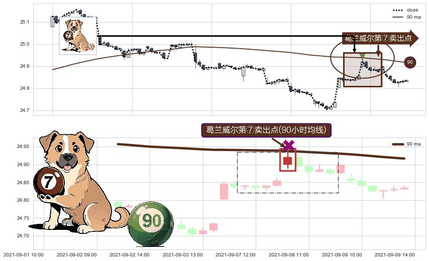 ⚀ 2021-09-08 09:00:00-小时显现 葛兰威尔均线 90小时均线 第⑦卖出点 下降趋势的中继信号,后市看跌,卖出信号