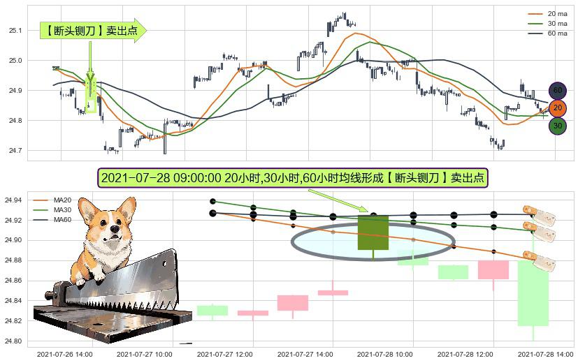 ⚀ 2021-07-28 09:00:00小时显现 20小时-30小时-60小时均线 【断头铡刀】卖出点 看空信号,后市看跌,卖出