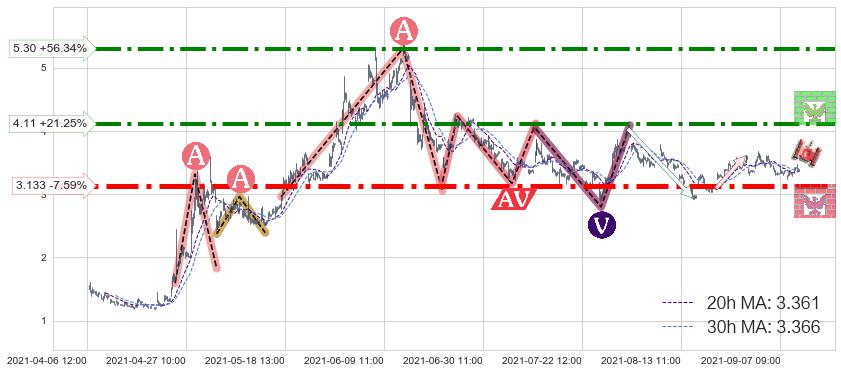 ♞ 20小时均线:3.361,30小时均线:3.366→ 快线<慢线