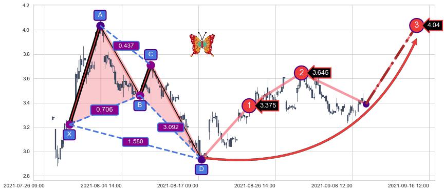 ➣ 已完成【蝴蝶】形态起点X: 07-28:12, 终点D: 08-17:11, 共87交易小时