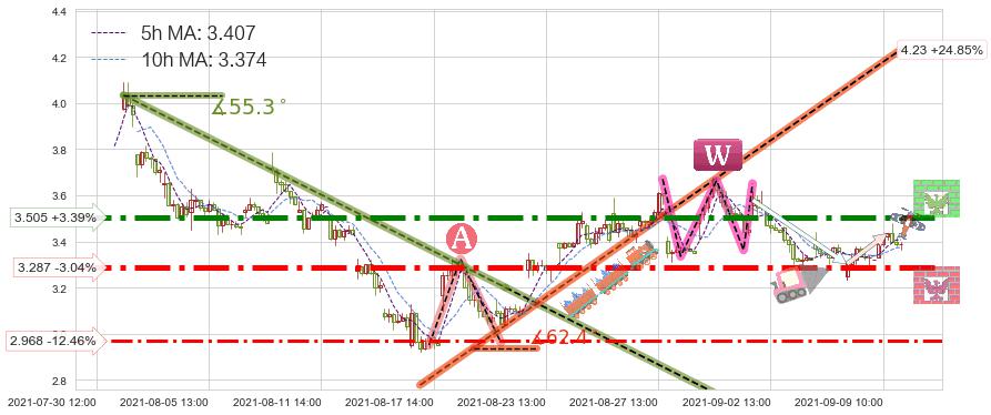 ♘ 阻力价格位3.505,可信任强度87.30%,距离最后交易2021-09-09 14:00形成的收盘价格3.390相差 +3.39%