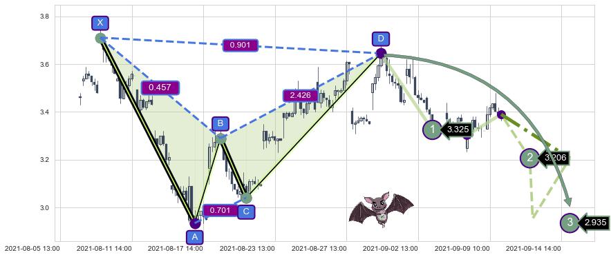 ➣ 已完成【蝙蝠】形态起点X: 08-10:09, 终点D: 08-31:12, 共99交易小时