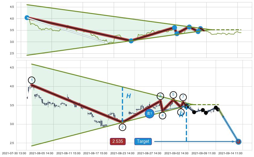 ➣ 【已确认突破】最后价格:3.390与最小【整理】第一目标价格→(09-14:11: 2.535 )相较: 下跌空间【较大】