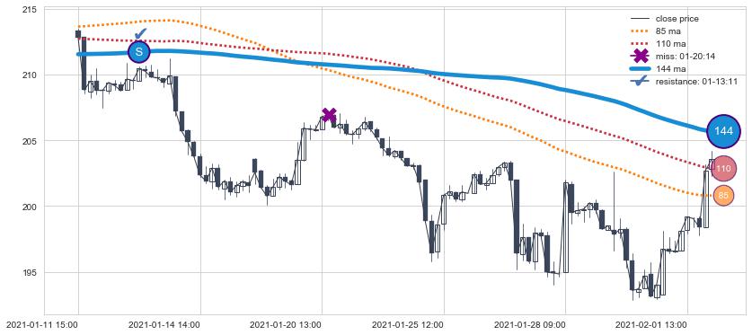 下跌趋势01-11 15:00-02-02 10:00,均线144确认关键阻力1处