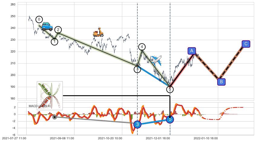 从2021-12-01 16:00至2021-12-27 15:00,共包含120个小时,阶段股价上涨13.82%,阶段股价变动位移路程比: 1 : 3