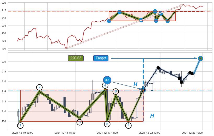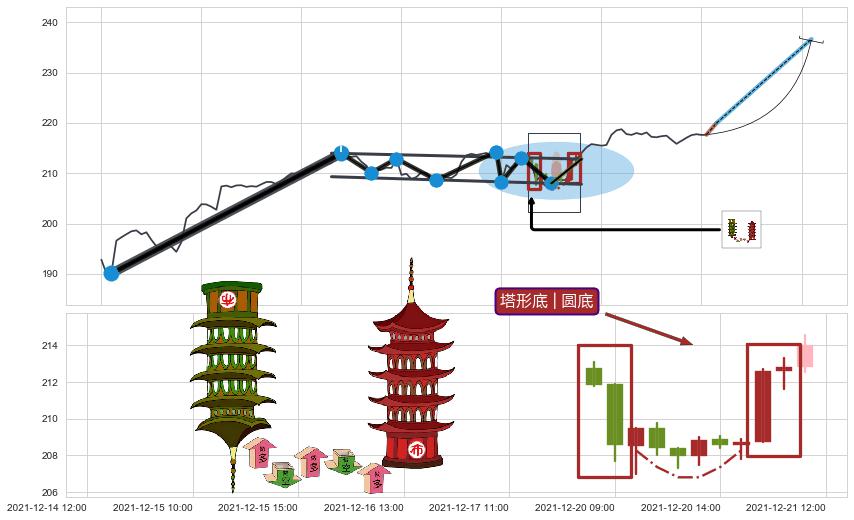 ➢ 【空方力量耗尽】已在12-21:12突破矩形提供的【阻力】颈线 214.31 →箱形震荡盘整结束