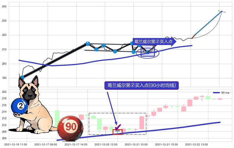 从2021-12-01 16:00至2021-12-27 15:00,共包含120个小时,阶段股价上涨13.82%,阶段股价变动位移路程比: 1 : 3