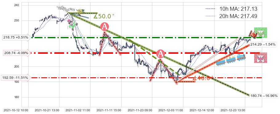 ♘ 阻力价格位218.75,可信任强度74.53%,距离最后交易2021-12-27 15:00形成的收盘价格217.65相差 +0.51%