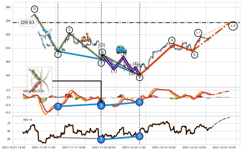 ➣ c.1: 当前c浪回调位置(12-22:12, 218.74),仍然有回调空间