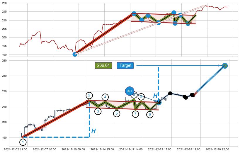➢ 【买1】: 激进型 买点 →(12-21:11: 212.81 )形成突破降⚑旗形【整理】形态