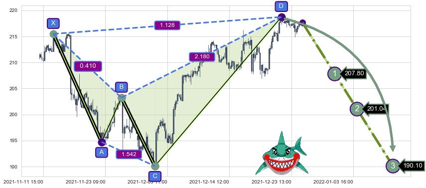 ➣ 已完成【鲨鱼】形态起点X: 11-15:09, 终点D: 12-22:12, 共185交易小时