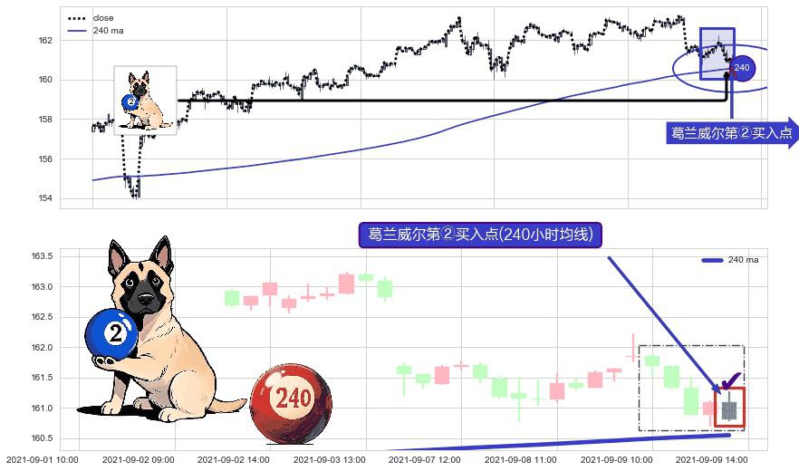 形态多维评估: ⚀ 2021-09-09 14:00:00-小时显现 葛兰威尔均线 240小时均线 第②买入点 上升趋势的中继信号,后市看涨,买进信号