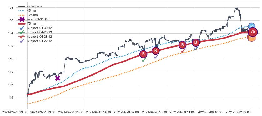 上涨趋势03-25 13:00-05-12 09:00,均线75确认关键支撑4处