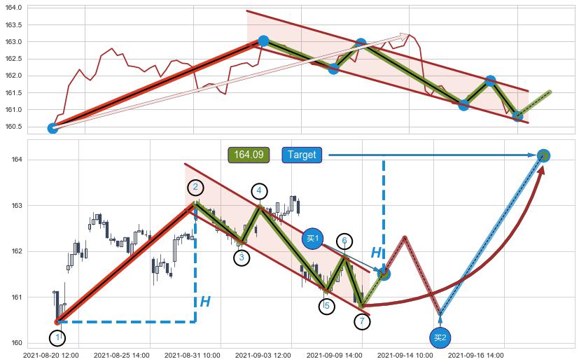 ➢ 08-20:09到达第❶价格目标位置161.70
