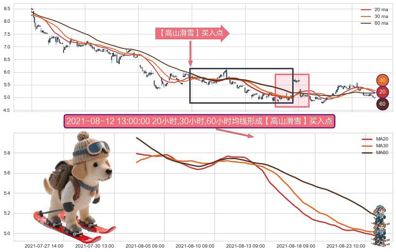 形态多维评估: ⚀ 2021-08-03 10:00:00小时-2021-08-23 14:00:00小时显现 20小时-30小时-60小时均线 【高山滑雪】买入点 看多信号,后市看涨,买入