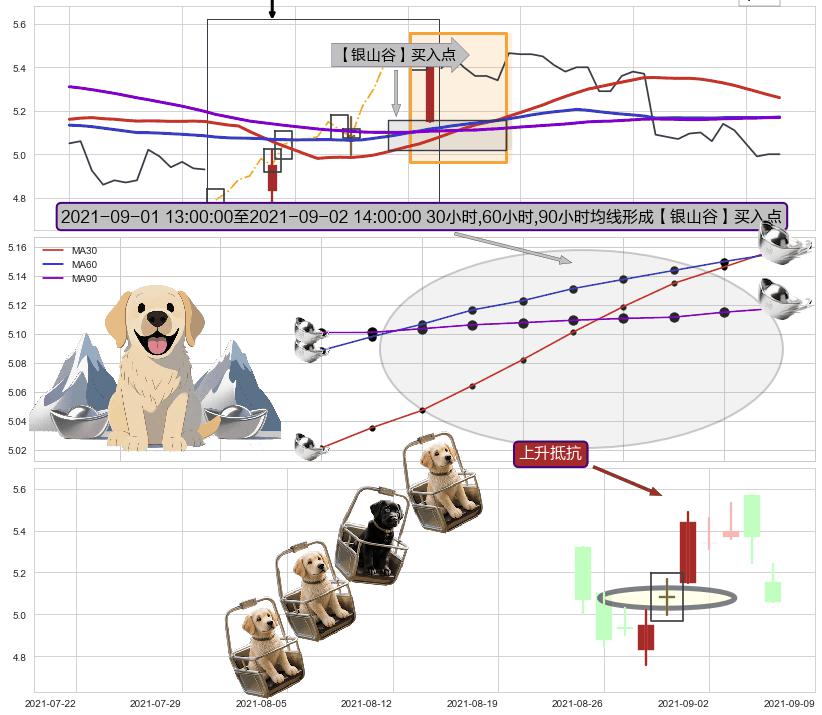 从2021-08-30 09:00至2021-09-09 14:00,共包含51个小时,阶段股价上涨4.68%,阶段股价变动位移路程比: 1 : 9