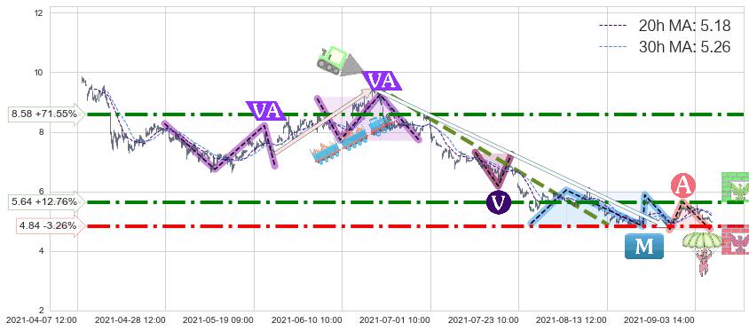 ➣ 5.1: 预测当前第5浪位置(08-30:09, 4.79),仍然有下跌空间