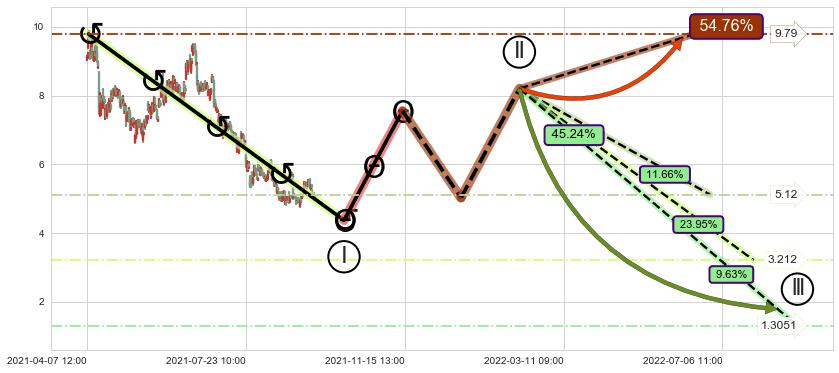 ➣ 大趋势循环浪继续向下概率45.24%