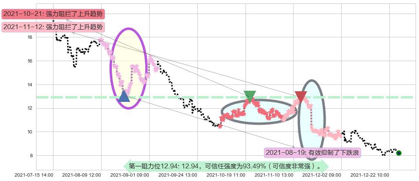 ♘ 阻力价格位12.94,可信任强度93.49%,距离最后交易2021-12-27 15:00形成的收盘价格8.23相差 +57.20%