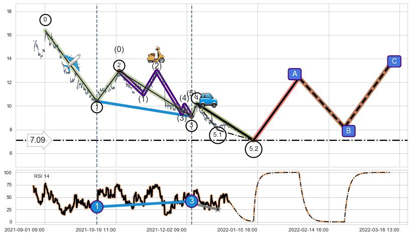 ➣ 5.2: 预测第5浪最终位置(01-07:13, 7.09)