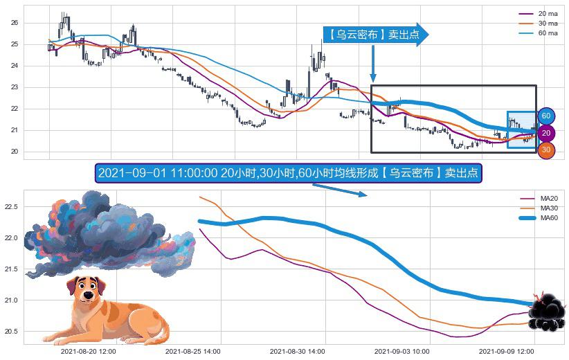 ⚀ 2021-08-25 10:00:00小时-2021-09-09 13:00:00小时显现 20小时-30小时-60小时均线 【乌云密布】卖出点 看空信号,后市看跌,卖出