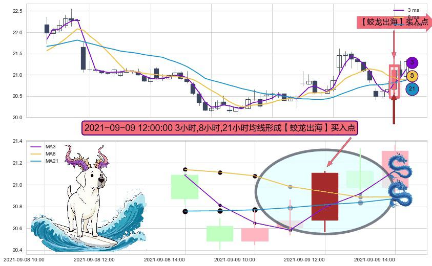 ⚀ 2021-09-09 12:00:00小时显现 3小时-8小时-21小时均线 【蛟龙出海】买入点 看多信号,后市看涨,买入