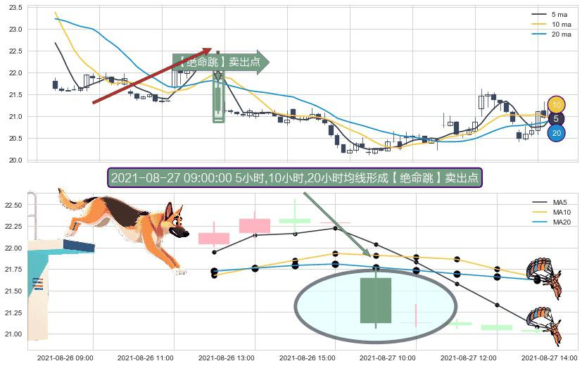 ⚀ 2021-08-27 09:00:00小时显现 5小时-10小时-20小时均线 【绝命跳】卖出点 看空信号,后市看跌,卖出
