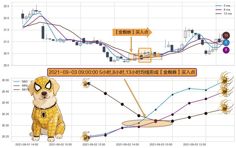 ⚀ 2021-09-03 09:00:00小时显现 5小时-8小时-13小时均线 【金蜘蛛】买入点 看多信号,后市看涨,买入