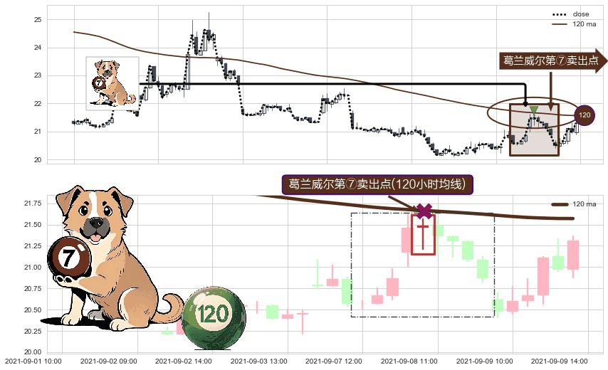 ⚀ 2021-09-08 10:00:00-小时显现 葛兰威尔均线 120小时均线 第⑦卖出点 下降趋势的中继信号,后市看跌,卖出信号