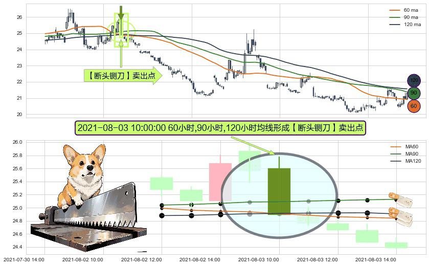 ⚀ 2021-08-03 10:00:00小时显现 60小时-90小时-120小时均线 【断头铡刀】卖出点 看空信号,后市看跌,卖出
