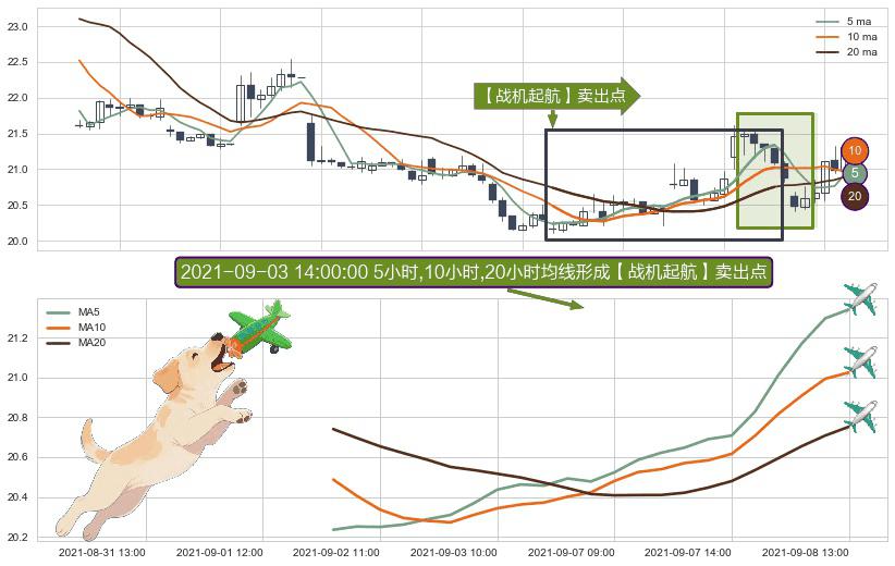 ⚀ 2021-09-02 09:00:00小时-2021-09-08 13:00:00小时显现 5小时-10小时-20小时均线 【战机起航】卖出点 看空信号,后市看跌,卖出