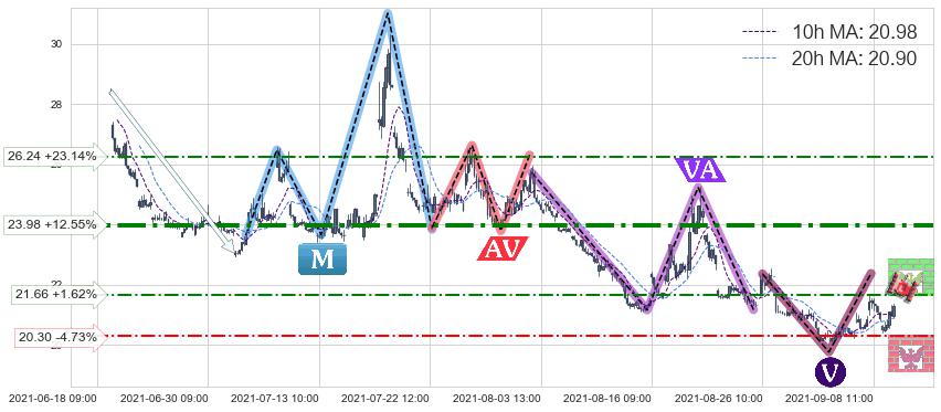 ♘ 阻力价格位26.24,可信任强度54.60%,距离最后交易2021-09-09 14:00形成的收盘价格21.31相差 +23.14%