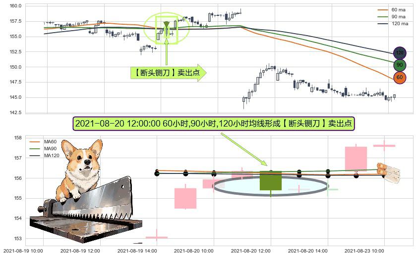 形态多维评估: ⚀ 2021-08-20 12:00:00小时显现 60小时-90小时-120小时均线 【断头铡刀】卖出点 看空信号,后市看跌,卖出