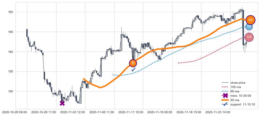 上涨趋势10-26 09:00-11-25 11:00,均线40确认关键支撑1处