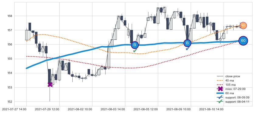 上涨趋势07-27 14:00-08-11 13:00,均线60确认关键支撑2处