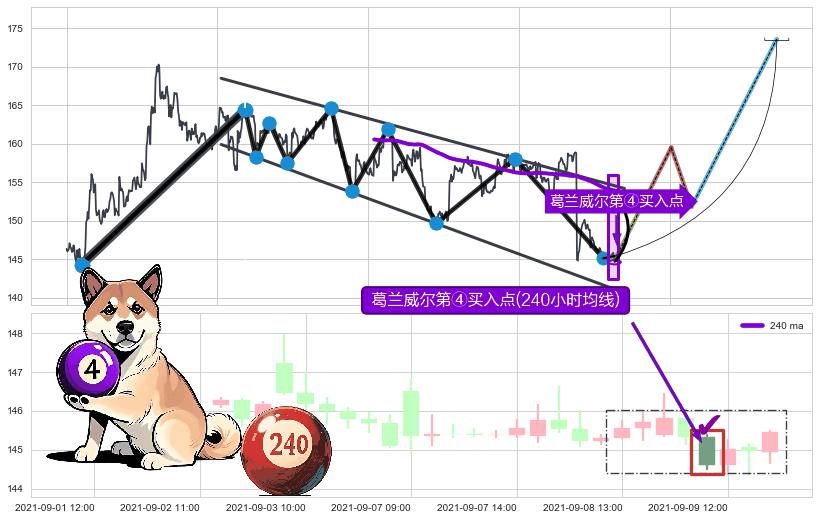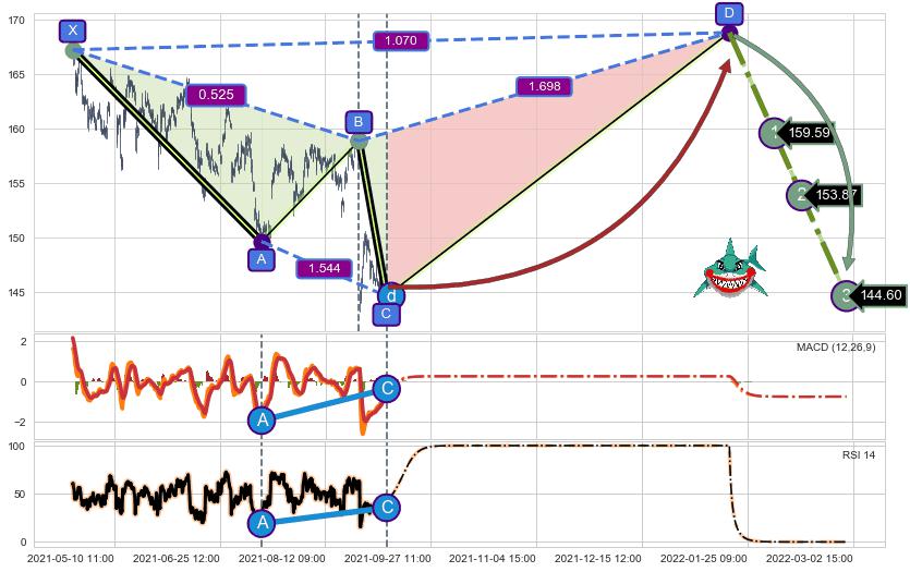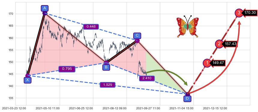 ➣ D点拟合预测价格168.86,距离最后交易收盘价格145.47相差 +16.08%