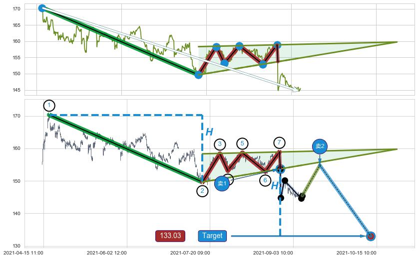 ➢ AI预测: 假定反转启动后, 第❷目标位置(02-14:14, 153.87)