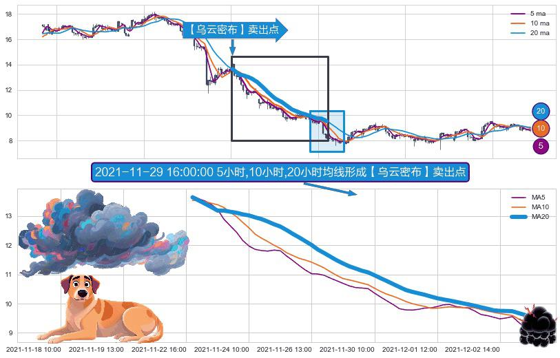 ⚀ 2021-11-23 09:00:00小时-2021-12-03 11:00:00小时显现 5小时-10小时-20小时均线 【乌云密布】卖出点 看空信号,后市看跌,卖出