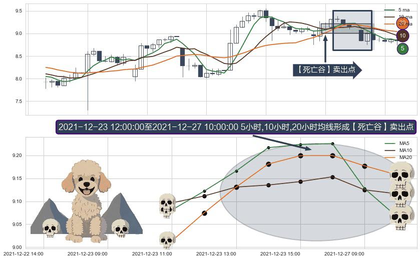 ⚀ 2021-12-23 13:00:00-小时至2021-12-27 10:00:00-小时显现 5小时-10小时-20小时均线 【死亡谷】卖出点 看空信号,后市看跌,卖出