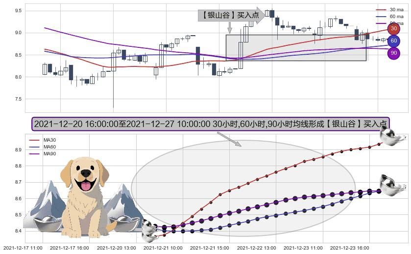 ⚀ 2021-12-21 09:00:00-小时至2021-12-27 10:00:00-小时显现 30小时-60小时-90小时均线 【银山谷】买入点 看多信号,后市看涨,买入