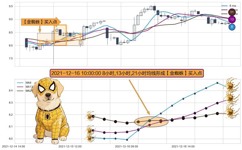 ⚀ 2021-12-16 10:00:00小时显现 8小时-13小时-21小时均线 【金蜘蛛】买入点 看多信号,后市看涨,买入
